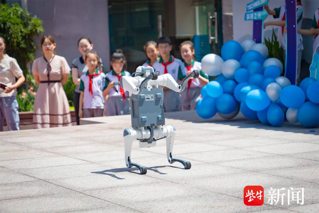 学校四7班衡梦谣同学作为学生代表上台发言,科学组尚建明老师鼓励同学们保持对世界万物的好奇心。两只灵活的机器狗“闯入”现场,时而模仿动物奔跑,时而精准完成高难度指令,萌趣与科技的结合让全场沸腾,让同学们近距离感受前沿科技的魅力与无限可能。